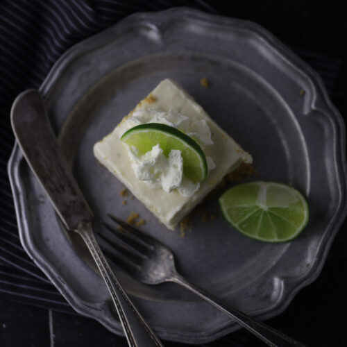A simple and delicious no bake lime cheesecake bar with a graham cracker crust! The best part is, it requires absolutely no baking. A tangy twist of heaven!